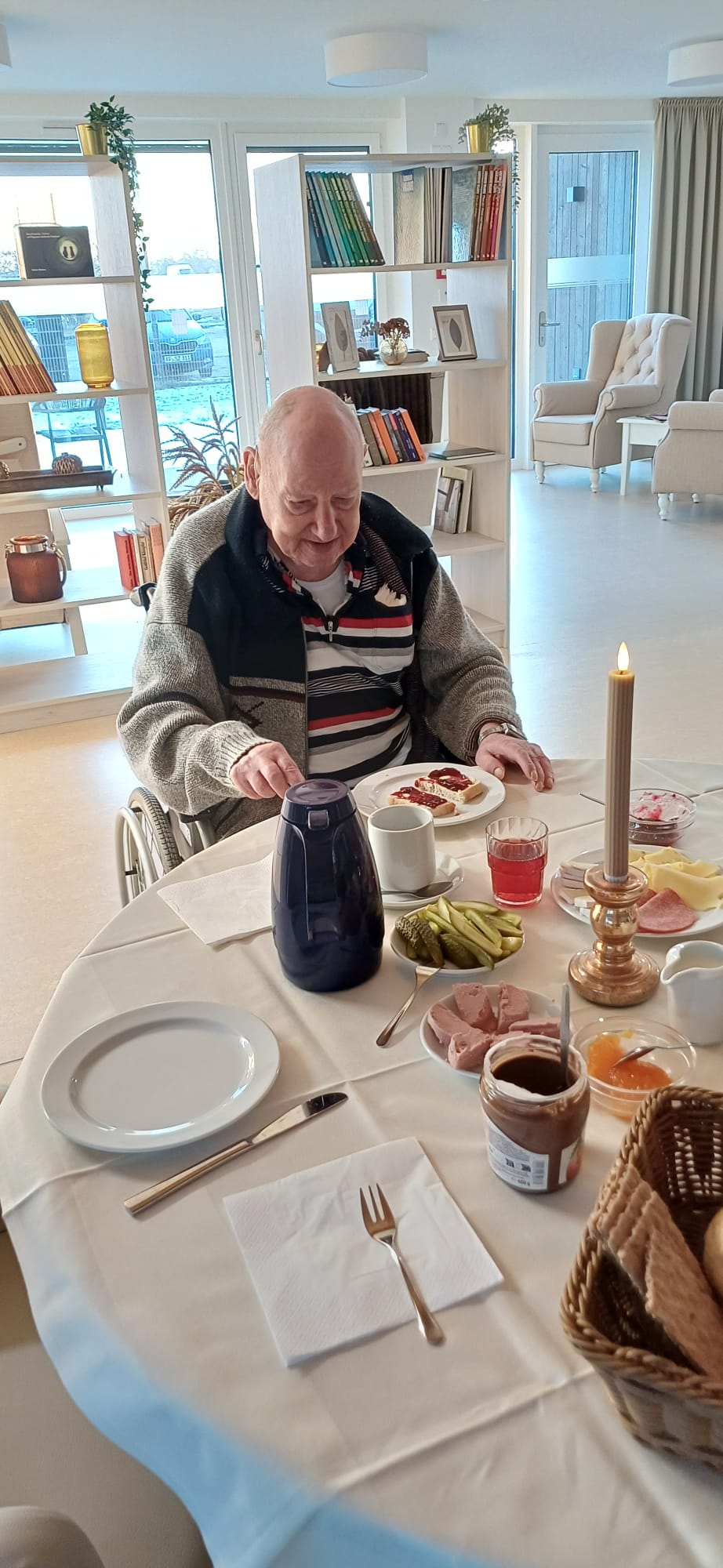 Unsere Glücksgestalter haben ein schönes Frühstück für unsere an Demenz erkrankten Bewohner organisiert, bei dem sie sich ganz in Ruhe vom reich gedeckten Tisch bedienen konnten.